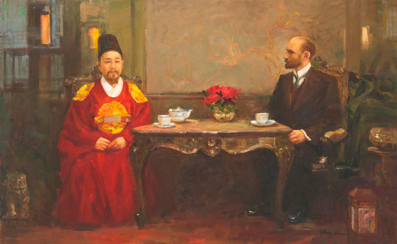 제가 그림을 시작한 뒤 그룹전을 한 적이 있는데요. 그 전시에 관람 오신 어느 분이 프랑스 ‘르 살롱’전에 출품해 보라고 권유해 주셨어요. 처음에는 극구 사양했는데, 워낙 강하게 권유하셔서 2014년에 출품을 했죠. 프랑스가 국가적으로 운영하는 전시이기 때문에 사전 심사를 거쳐 통과되어야만 그림을 선보일 수 있어요. 그런데 감사하게도 심사에 통과되었죠. 제 아들 내외와 손자가 함께 같은 방향을 보고 있는 그림인데요. 전시장에 가 보니 제 그림 앞에 사람들이 다 서 있더라고요. 한마음으로 한 방향을 보며 동행하는 ‘가족’에 대한 메시지가 녹아 있는 작품인데, 그 메시지가 다양한 국적의 관람객들에게 잘 전달된 모양이에요. 2년 뒤, 두 번째로 출품한 작품에는 피아노 연주 장면이 담겨 있어요. 한 사람은 연주를 하고, 한 사람은 악보를 넘겨 주며 돕는 장면이죠. 이 작품을 전시한 이후 프랑스어로 메일이 자꾸 오더라고요. 판매나 계약을 제안하는 화상들의 메일이었죠. 지금이야 손쉽게 번역이 가능한 시대이지만 당시에는 까다로웠잖아요. 그래서 어떤 문의에도 응하지 않았어요. 드러내며 활동하는 것보다 내 실력을 갈고닦는 게 더 중요하다고 생각했으니까요.(웃음) 2024년에는 세브란스 병원의 의뢰를 받아 그린 ‘제중원을 꿈꾸다’(2023년작)를 출품했죠. 알렌 선교사가 고종을 알현하고 한국 최초의 서양식 병원인 제중원 설립을 윤허받는 장면이에요. 해외에 한국의 역사를 소개할 수 있는 뜻깊은 기회여서 감사했어요.